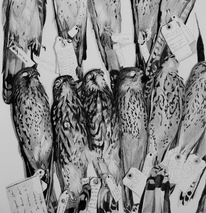 Sketch of kestrel skins at Natural History Museum / Courtesy of the artist